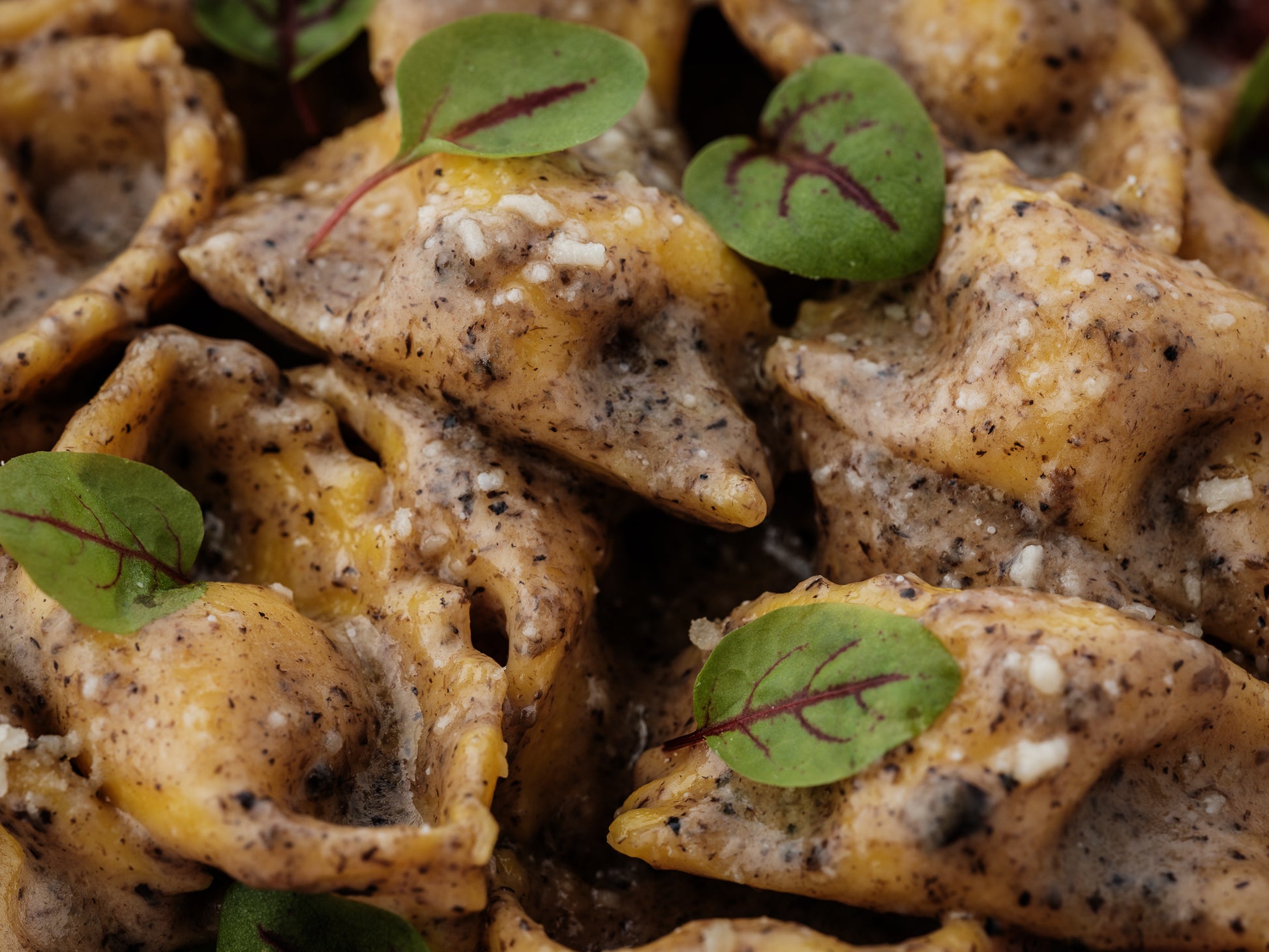 Handmade agnolotti filled with braised onions and creamy truffle sauce