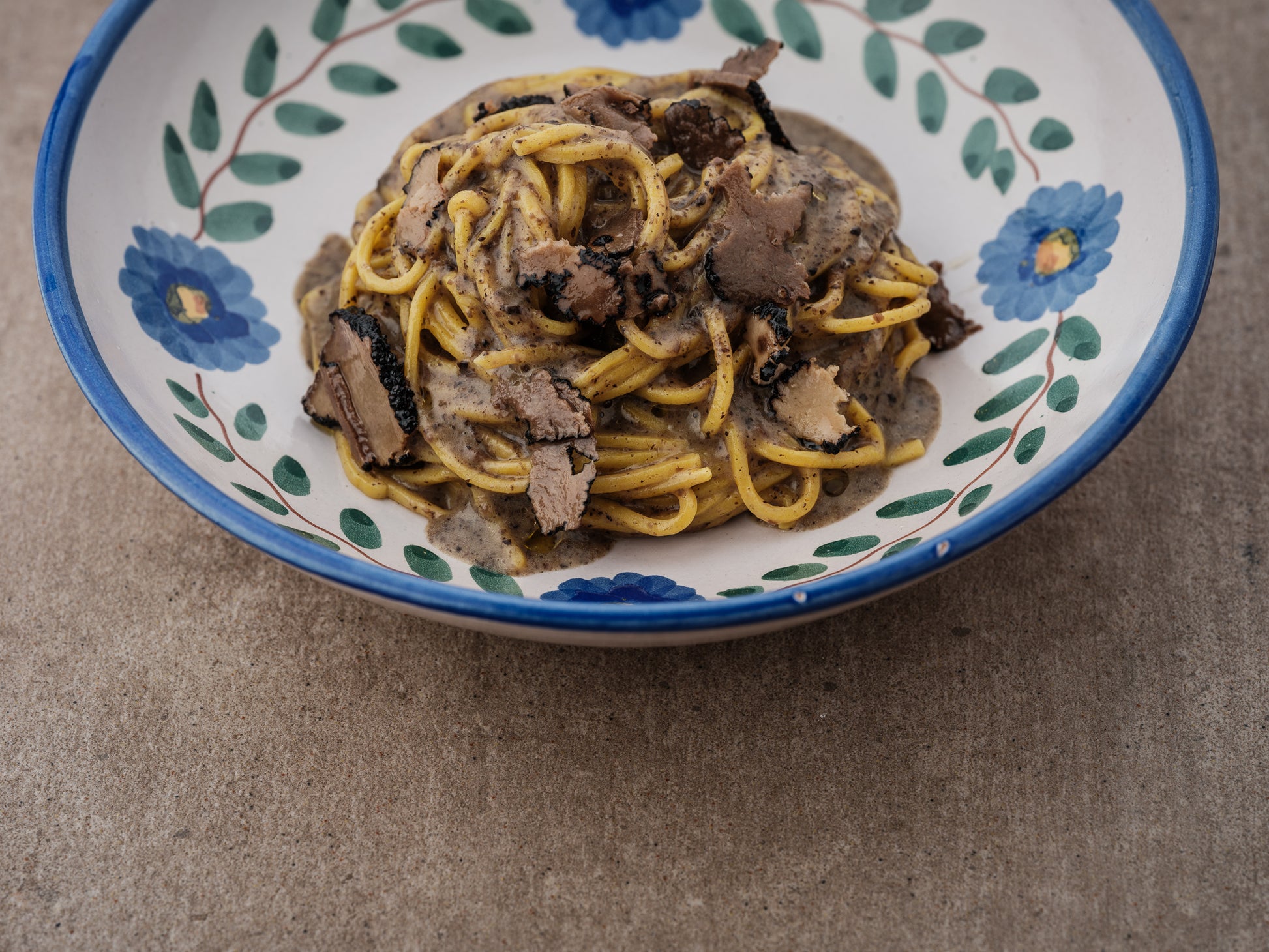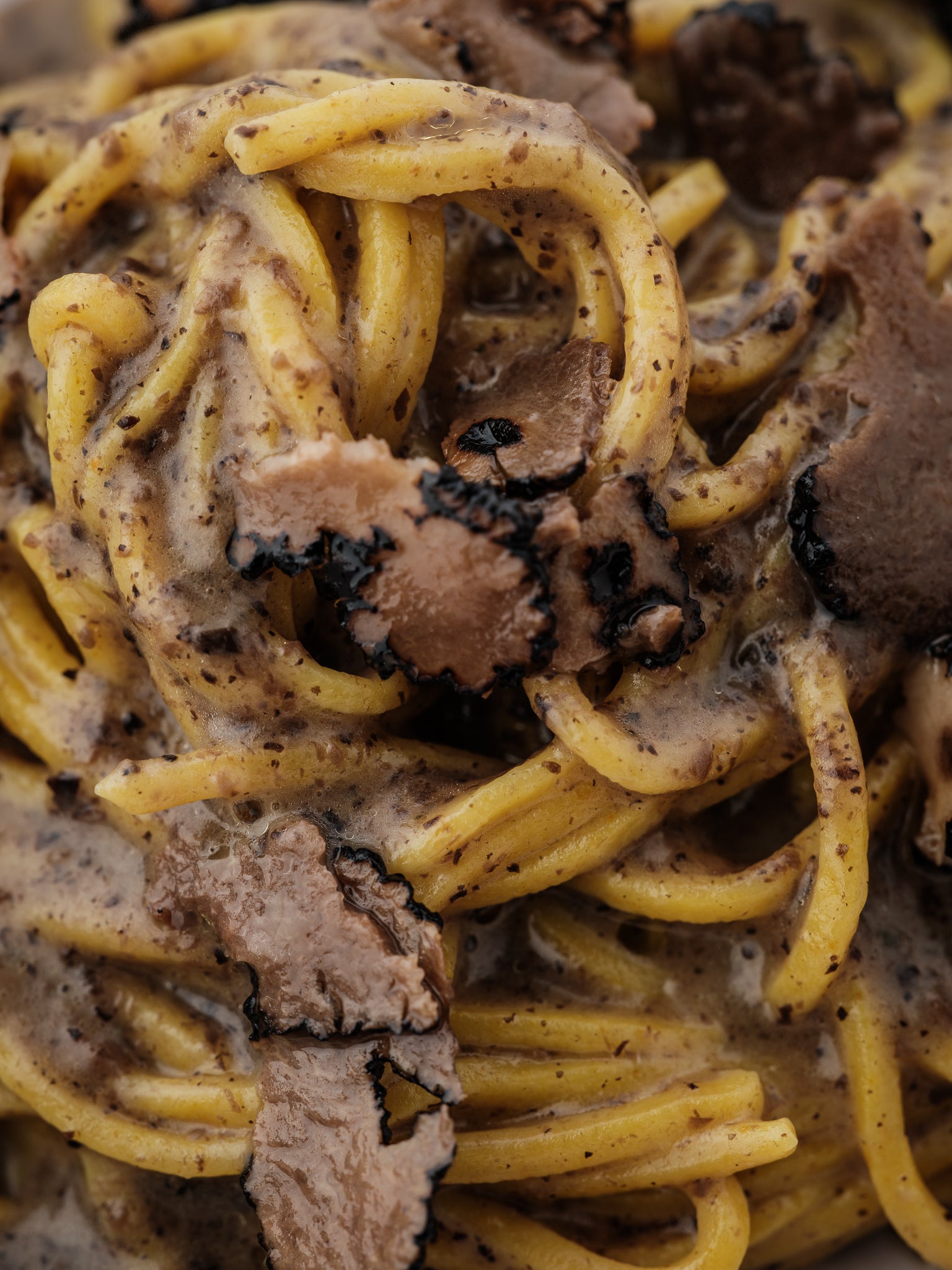 Handmade tagliolini with a rich and creamy black truffle sauce